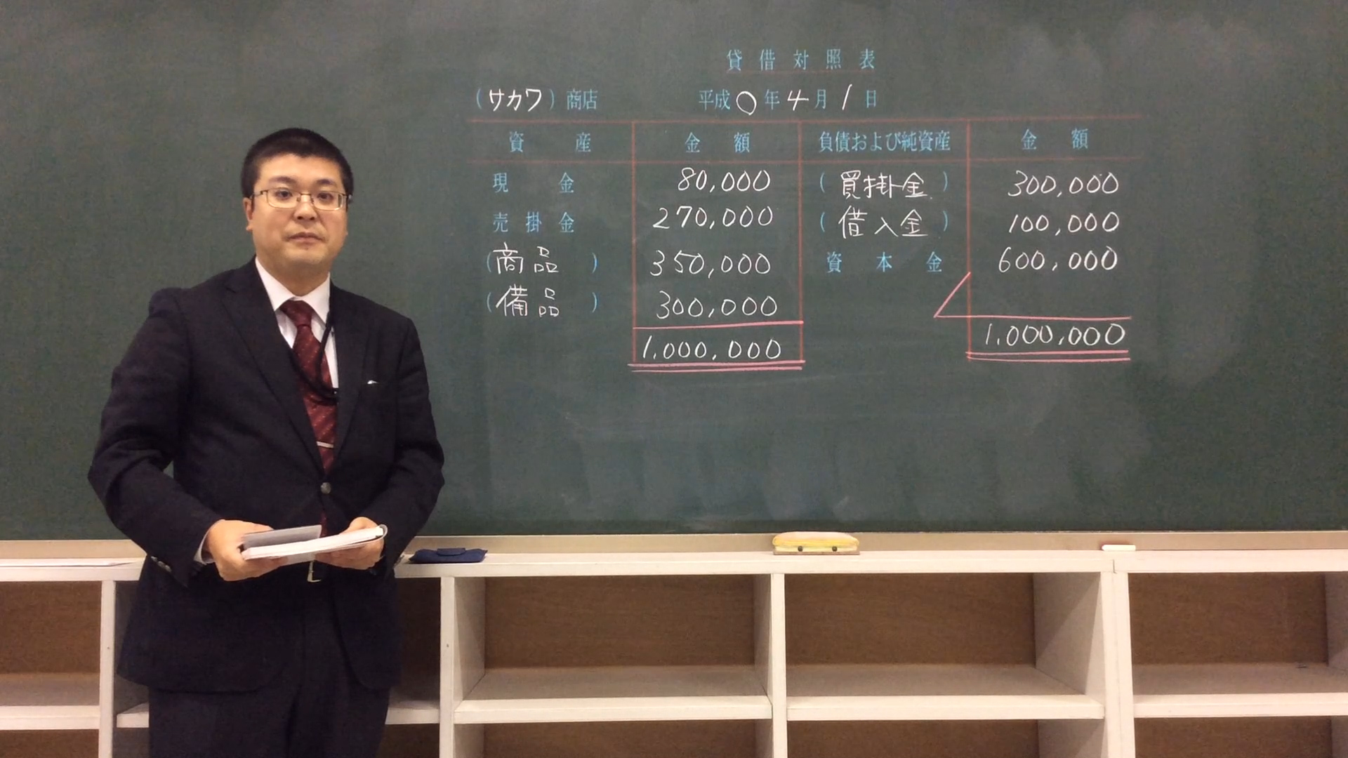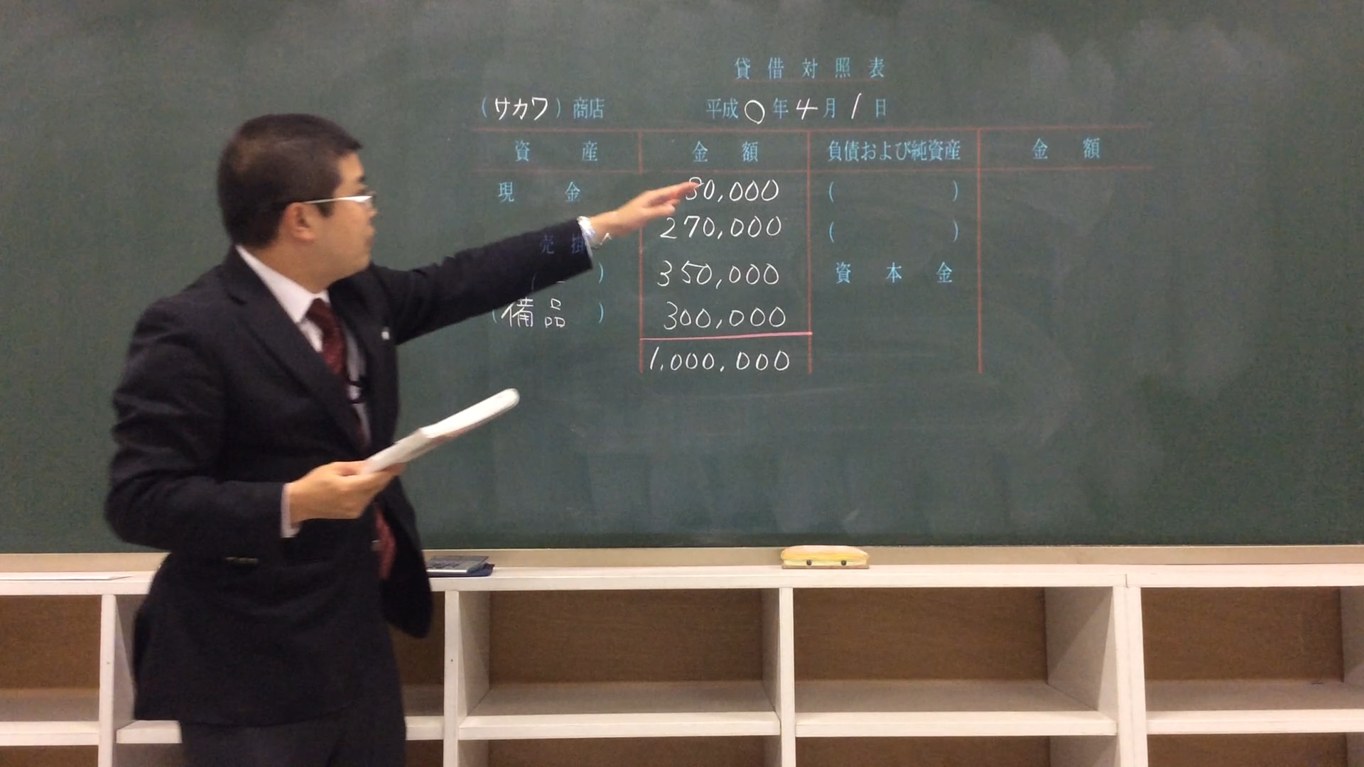 簿記の授業で貸借対照表の練習問題を、先生と一緒に答え合わせすることありますよね!