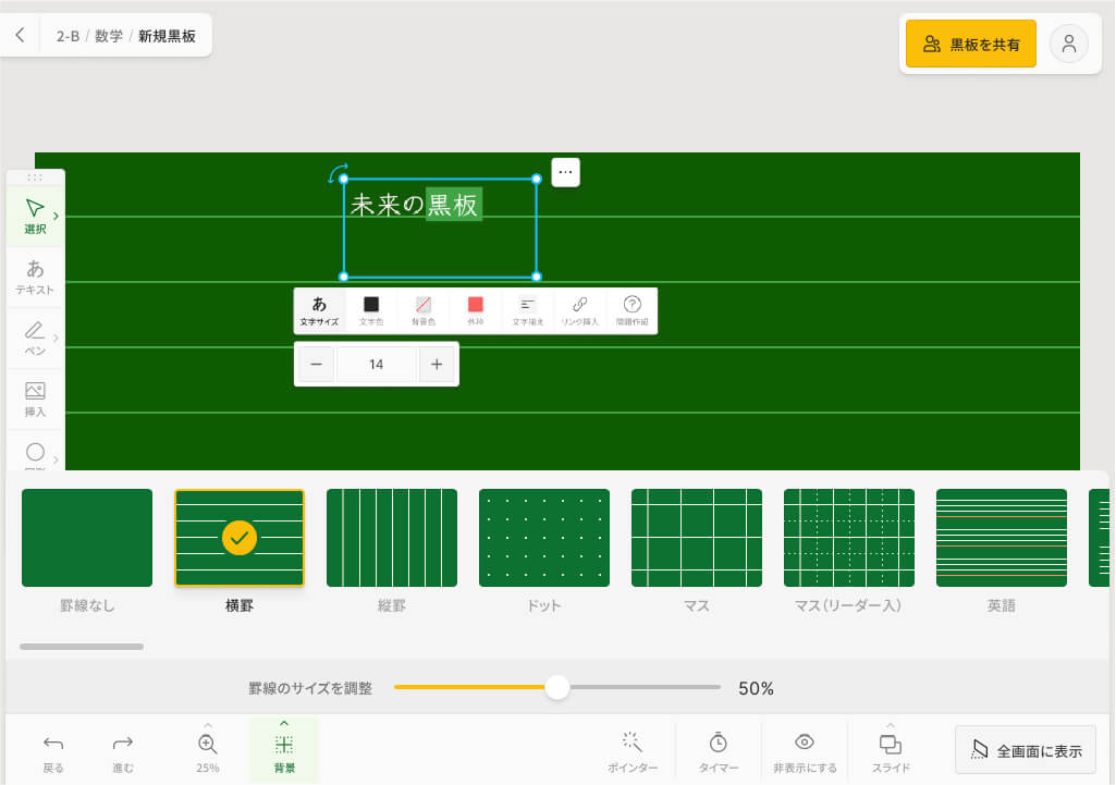白黒反転、虫食い問題、ガイド表示、タイマーなど、従来からご好評だった機能は、レベルアップしてそのまま残しました。便利さが増す新機能も搭載しています。いつもの黒板にKocri for Cloudをプラスするだけで、先生はより伝えやすく、児童生徒はより理解しやすい授業が実現できます。