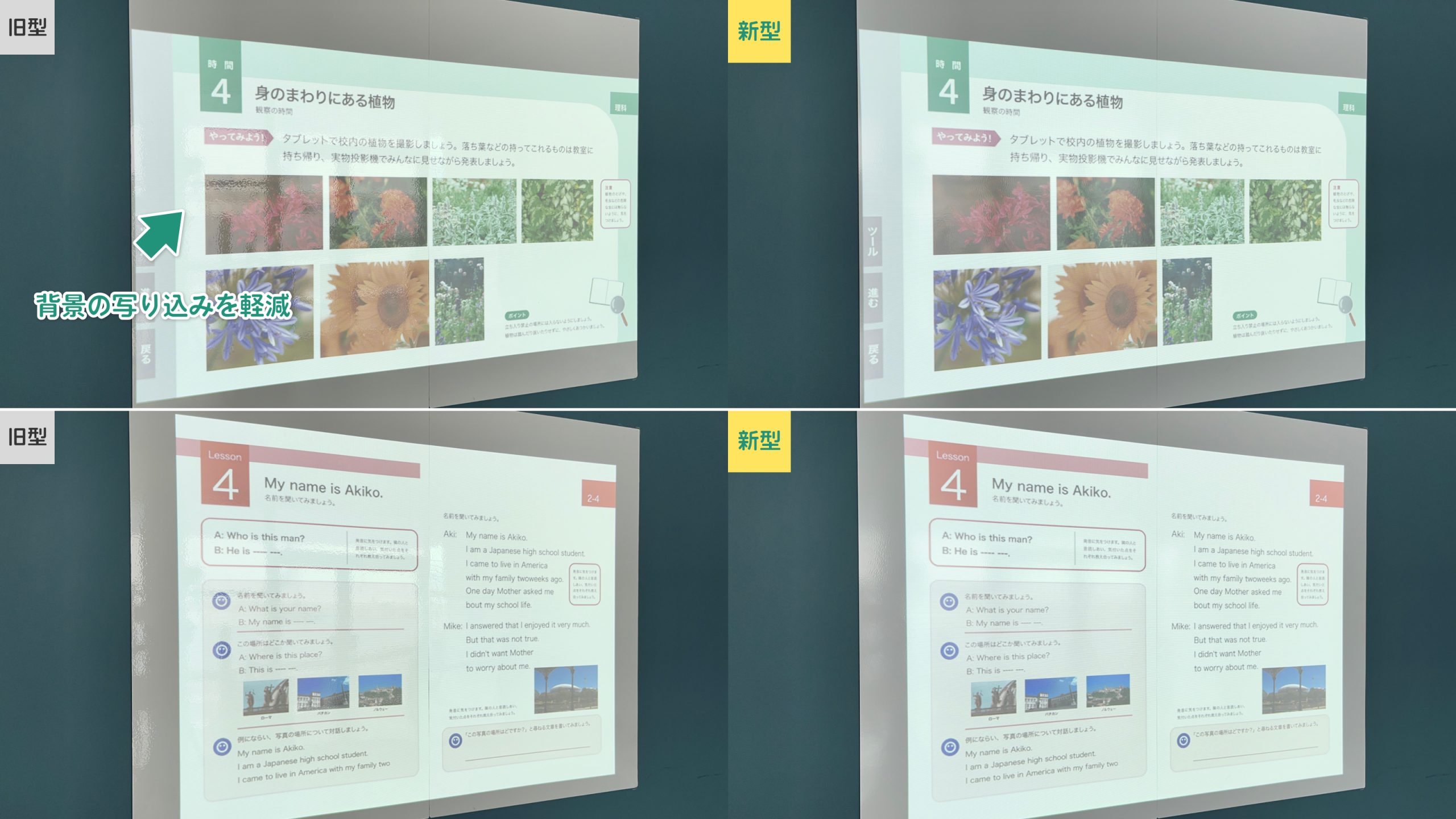【デジタル教科書を投影した際の映り具合の比較】