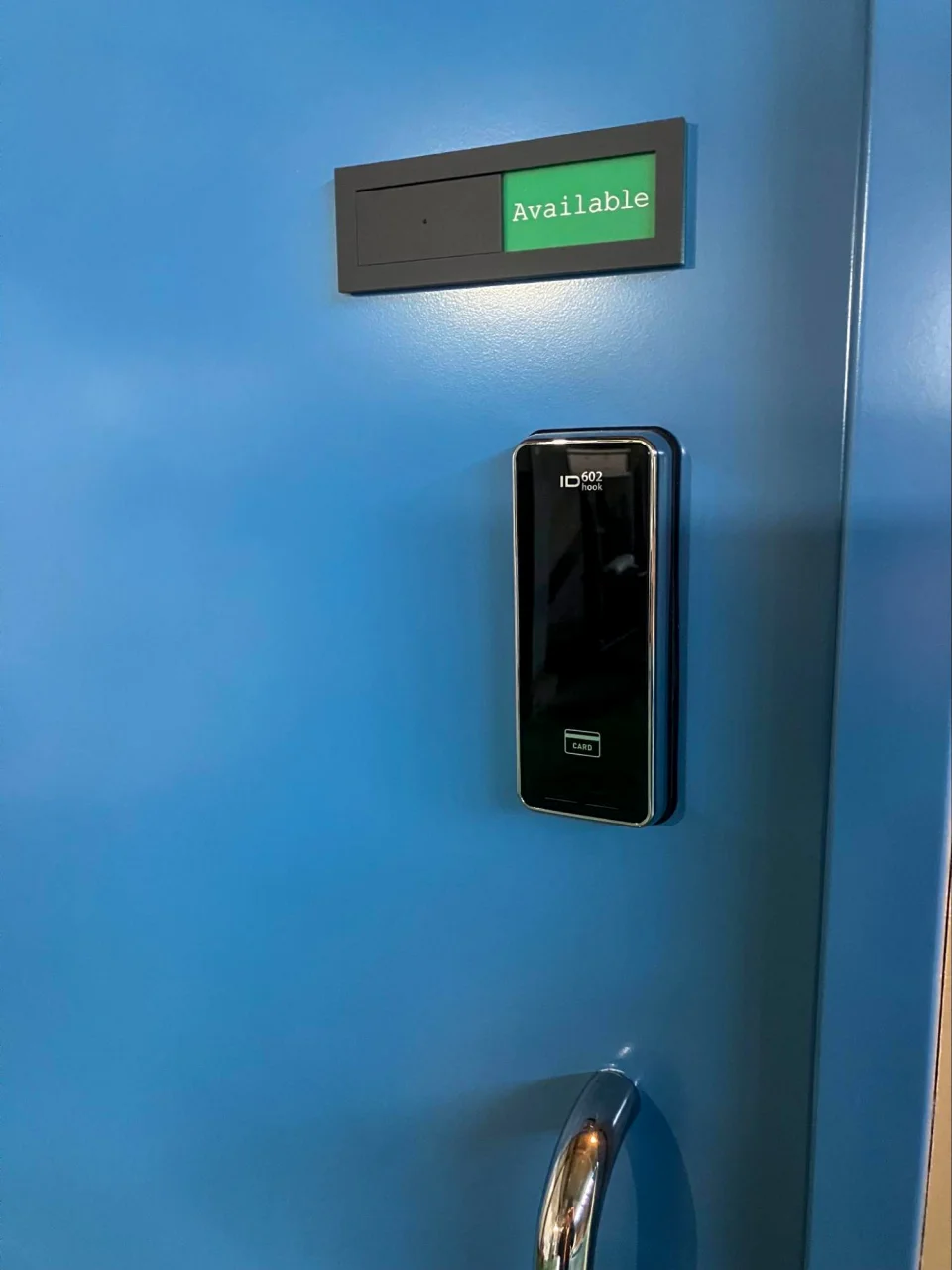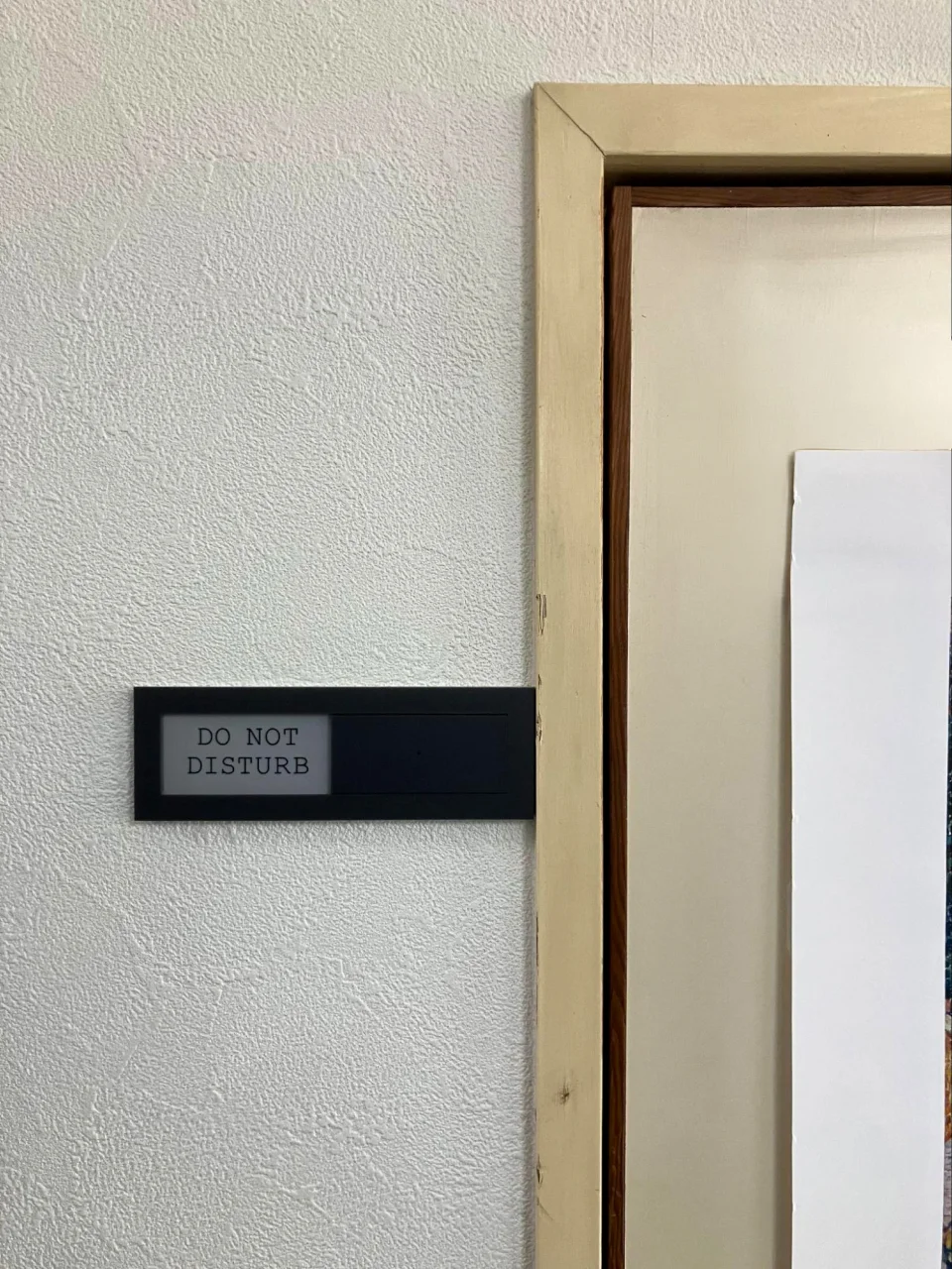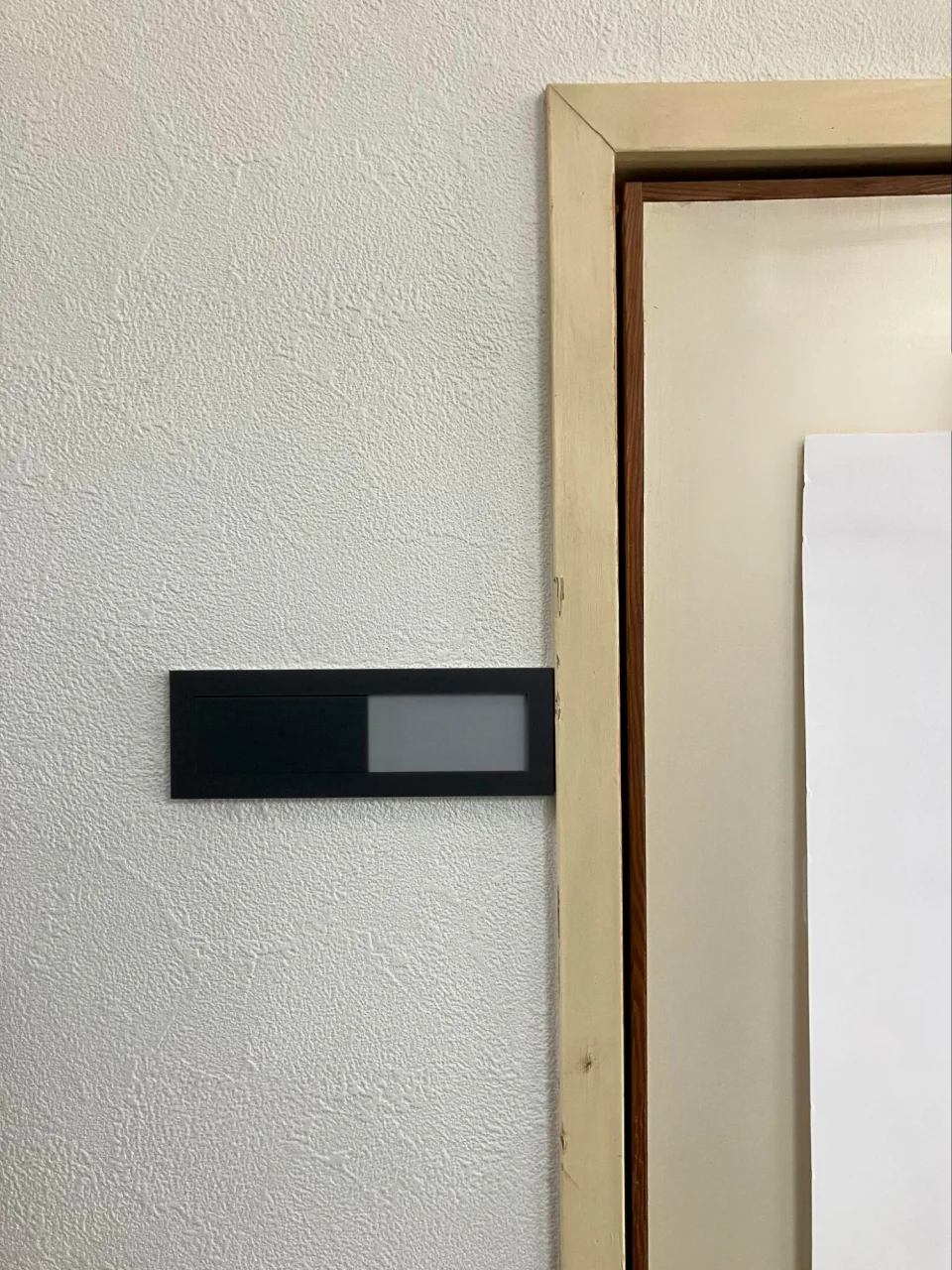 ひと目で使用中なのかどうか分かるスライド式のサインプレートを購入し、扉に設置してくれました。