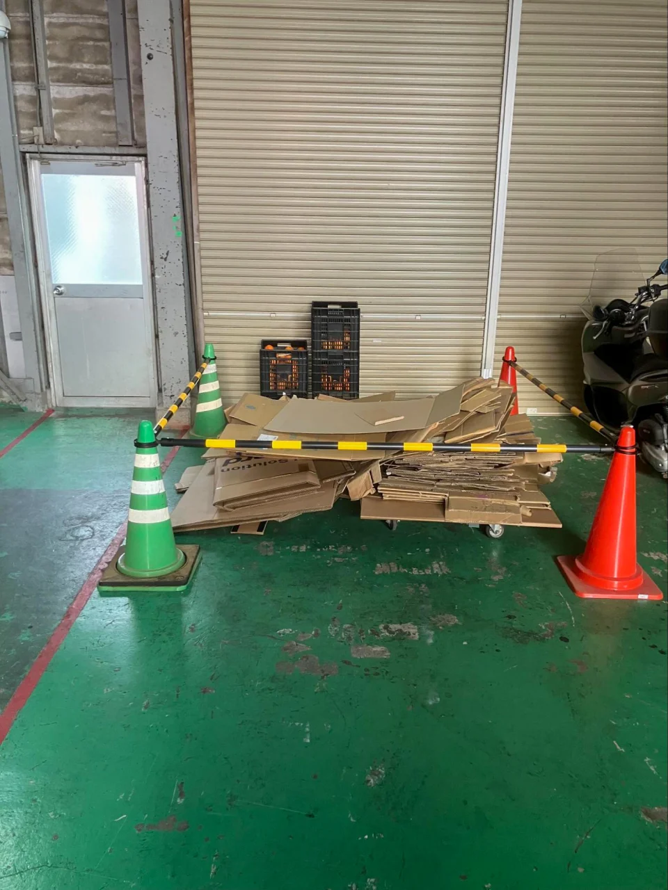 対策を検討しつつ、仮で工場内にダンボールゴミ置き場の区画を設け、週1回は回収に来てもらえるように手配してくれました。